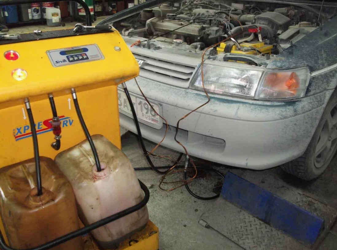 - Промывка системы — подаётся специальный промывочный раствор или используют новое масло для прогонного промыва, удаляются отложения и остатки продуктов износа.